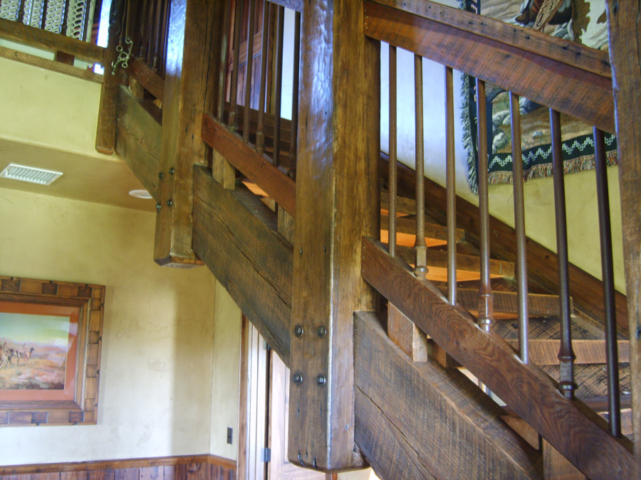 Heartpine Beams, Newel Post and Crown Molding from Sweetwater Mill