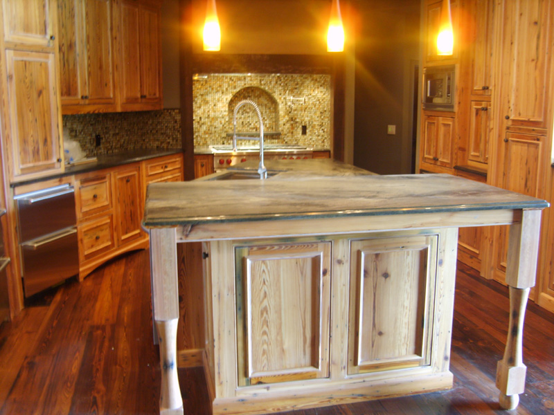 Heart Pine Cabinets and Flooring made from Sweetwater Mill