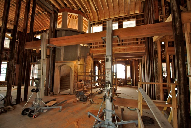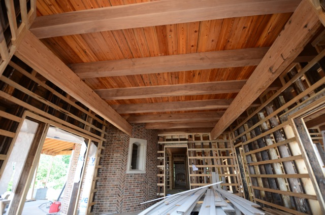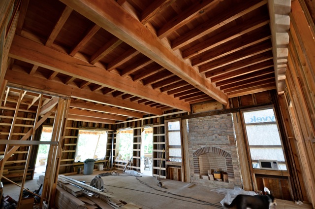 Wall and Ceiling Panels from Tupelo Compress, Hand Hewn Beams from The Wilson House built in 1844 Pontotoc Co, Mississippi