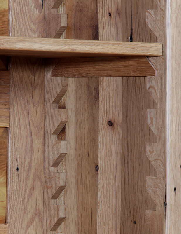 Shown in White Oak with Heart Pine Back, three adjustable shelves