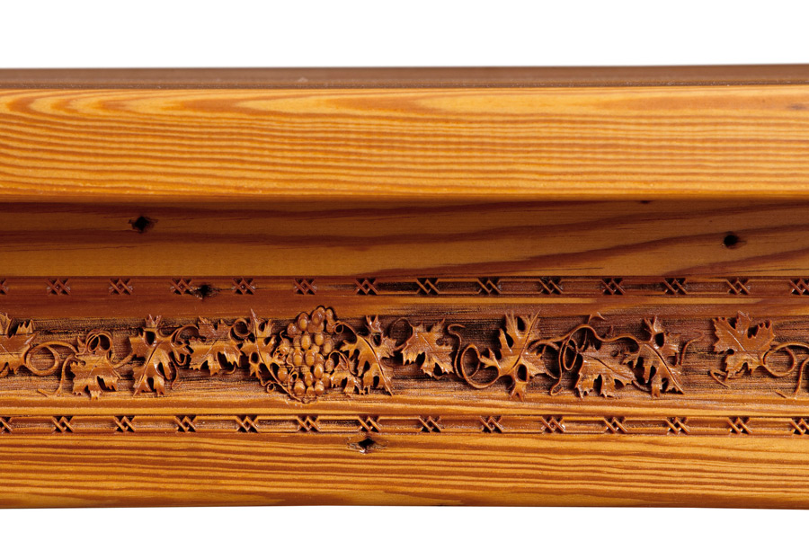 Pontotoc is a Chickasaw word meaning” Land of Hanging Grapes” The grape vine border is carved into the wood with such detail you can see the grapes.