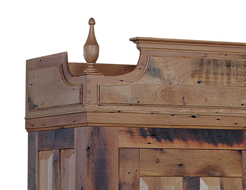 Shown in White Oak with Heart Pine Back, two adjustable shelves